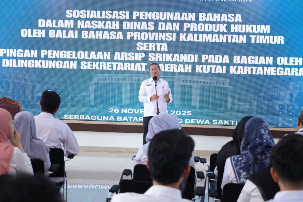 Tenggarong – Upaya meningkatkan kualitas tata naskah dinas dan pengelolaan arsip pemerintahan kembali diperkuat oleh Pemerintah Kabupaten Kutai Kartanegara (Kukar). Hal ini diwujudkan melalui kegiatan Sosialisasi Penggunaan Bahasa dalam Naskah Dinas dan Produk Hukum serta Pendampingan Pengelolaan Arsip Srikandi yang digelar di Ruang Serbaguna Kantor Bupati Kukar, Rabu (26/11/2025).